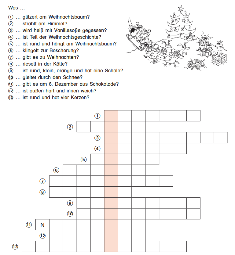 Aufgabe: Ihr seht hier ein weihnachtliches Kreuzworträtsel.