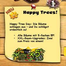 Also ich freue mich auf den happy tree Day und baue auch um. Ich werde mindestens meine Waldfläche mit den hochwertigsten Bäumen zupflastern und auch meine Insel wird ein Wald werden. Die zusätzlichen EP sind mir den Aufwand wert. Schlieslich kann man während des happy Tree days 2x ernten. Das lohnt sich schon.