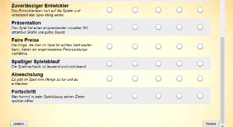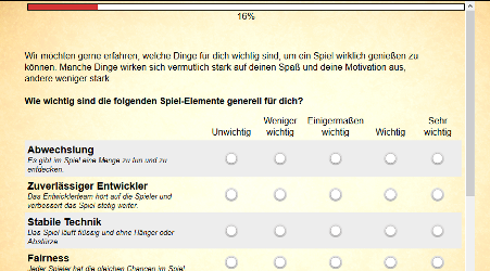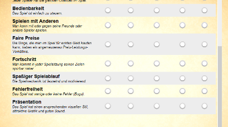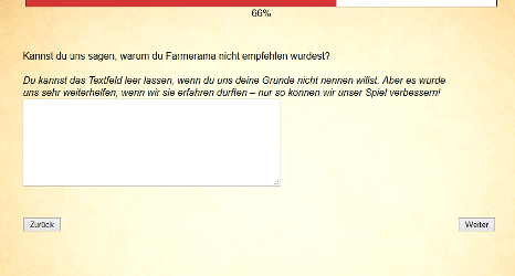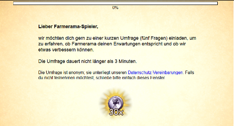 Ich hatte die Umfrage schon 3 Mal und habe sie nicht nur genutzt um schnelle Punkte einzuheimsen, sondern habe auch ehrlich meine Meinung zum Spiel kundgetan. Vielleicht trägt das ja auch etwas dazu bei dass sich etwas verbessert.
