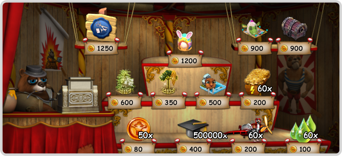 Je besser Du spielst, desto mehr Chips bekommst Du. Die Chips kannst Du dann an der Gewinnbude gegen Items und Anderes eintauschen. Aktuell gibt es vier Spiele auf dem Jahrmarkt, „Hau den Lukatz„, „Maulwurf-Matsch„, „Plunder plündern“ und „Ballonschießen„.