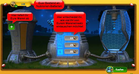Um diese Waren dann gegen etwas anderes einzutauschen, benötigt Ihr Nublionen-Batterien