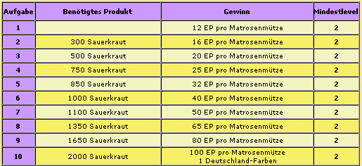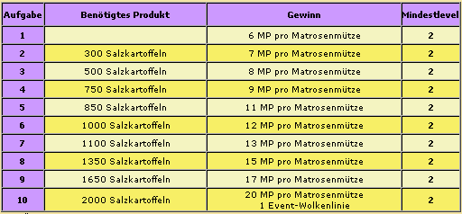 Klasse! Streßfrei! Die Zeit reicht um die D-Fahne zu erspielen und die letzten Events haben mir gezeigt das die Mützen ausreichend dropen und damit bestimmt auch mehr als erfüllt werden! also auf zum Sauerkrautanbau. Wolke spiele ich eh nicht:-)