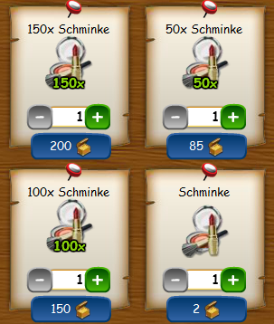 5 Freigeschenke (mit Rune 7) danach kostet 1 x Schminke – 2 Tulpgulden.