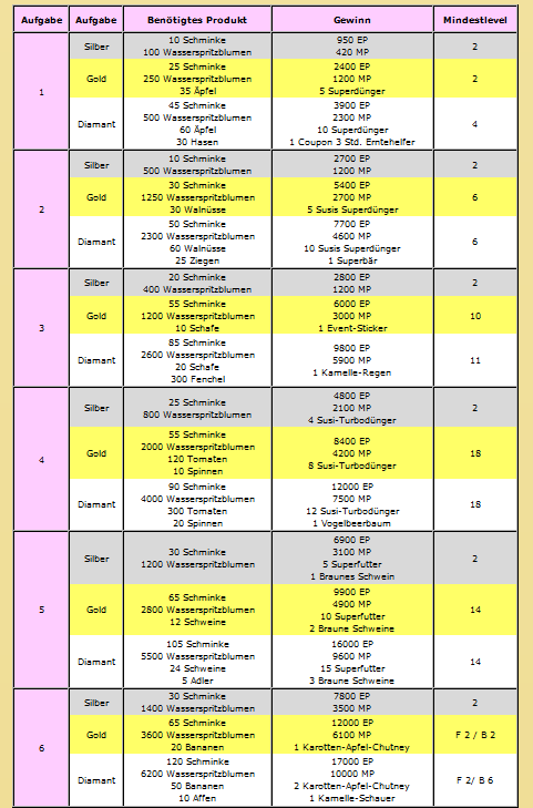 Wow habe grad Aufgabe 6 ohne müh und not und ohne eg-einsatz geschafft und mein pensum ist erreicht sowohl bei meiner Mainfarm Kantiran82 als auch bei meiner Twinkfarm Natulla78