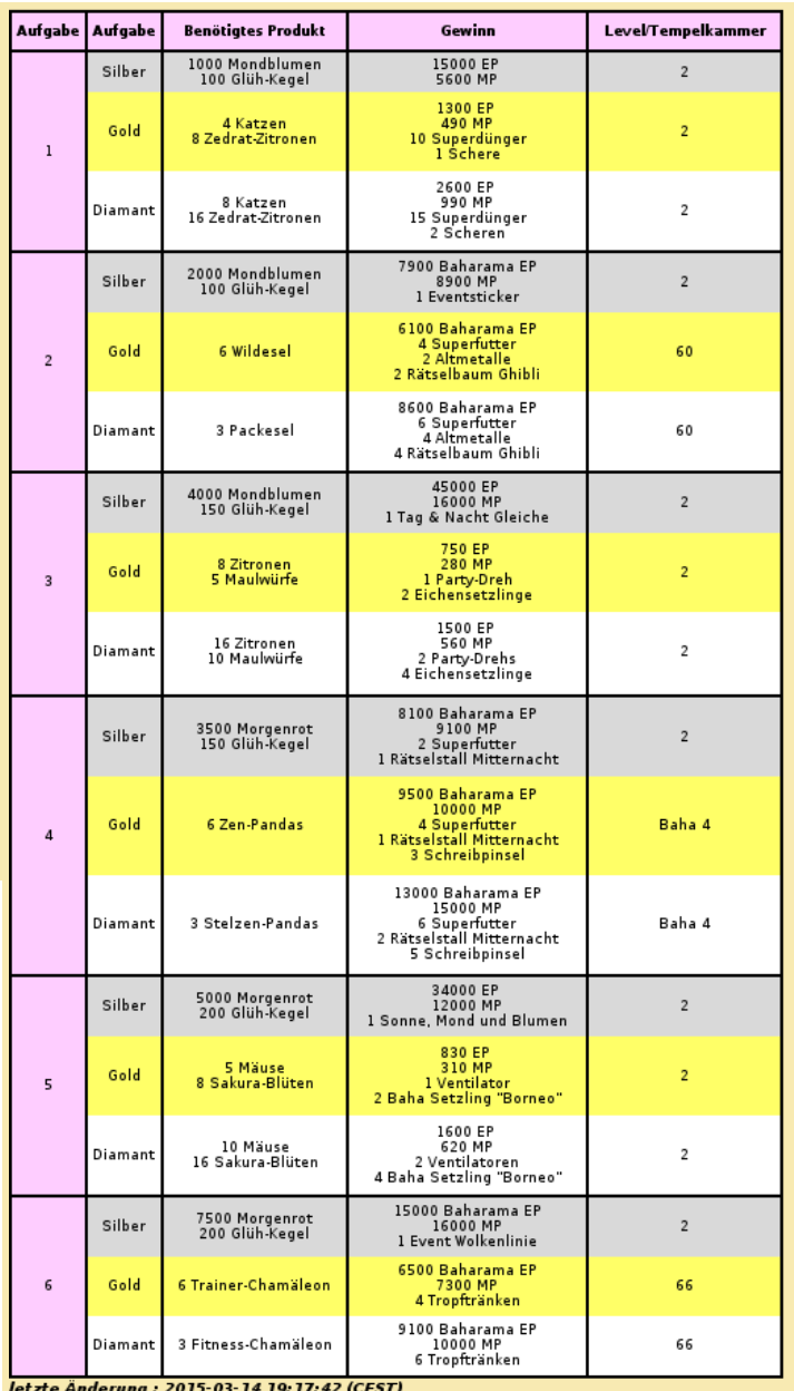 Items und Ranke sind aber nicht jedem das wichtigste… ich hätte auf die Rätselställe und Bäume gesetzt aber da mann da so viele tiere braucht die ich nicht habe wird a wohl nix. auch die Menge der eventpflanzen finde ich schon hoch. ich kann nur abend spielen….