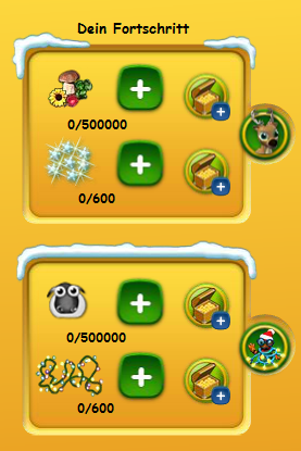 das mit den Tieren hat sich bei mir auch erledigt – ohne Bahamaramatiere hab ich einfach zu wenige – aber gut Items hab ich eh genug. Schade das man das droppen der Lichterkette nicht abstellen kann und dafür das doppelte an Glitzer bekommt ;)