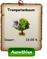 Für jede erfüllte Stufe in der Farmhallenquest erhaltet Ihr Saatgut für den Trompetenbaum. Das Saatgut findet Ihr in Eurer Inventarleiste bei den Bäumen.