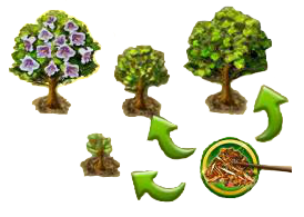 Der Trompetenbaum hat vier verschiedene Reifestufen mit jeweils unterschiedlichen Moospennywerten. Die Bäume können auch in den verschiedenen Reifestufen geerntet werden, allerdings nur einmalig, jeder Baum kann nur 1 x geerntet werden: