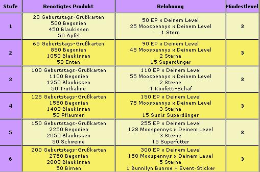 Der Geburtstagskorb für1,99 € wäre zum 1. Eventteil sehr sinnvoll gewesen. Damit hätte man schneller den Anfangsbestand aufstocken können. Jetzt macht er irgendwie keinen grossen Sinn mehr.