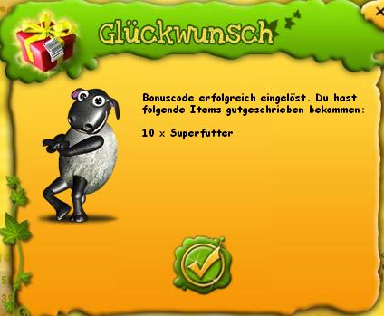 Wenn Ihr den Code auf der Newsseite der Farm in das Bonuscodefeld eingebt, erwartet Euch folgendes: