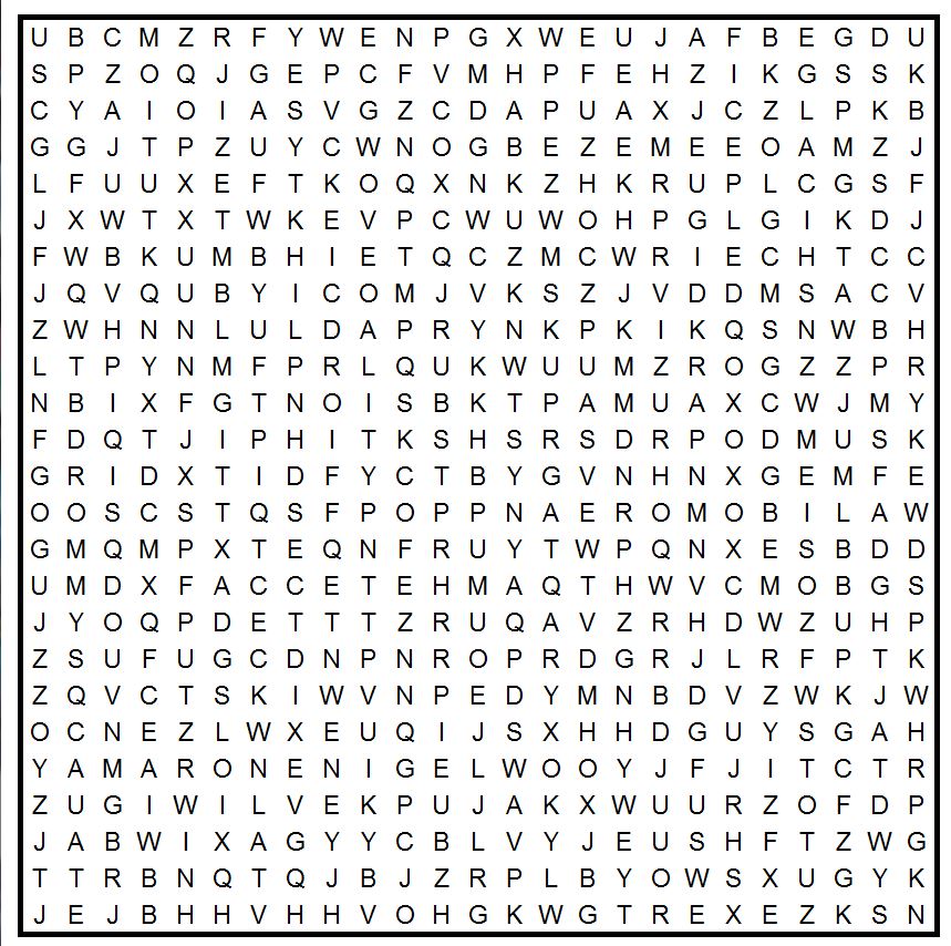 In diesem Buchstabengitter findet ihr 5 Items die ihr suchen sollt