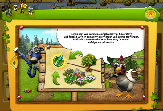 Zusätzlich droppt Sauerstoff, den Ihr im Event abgeben müsst, damit die Stadt vom Schmutz und Smog befreit wird. Er droppt aus allen Pflanzen, Böumen und Ställen.