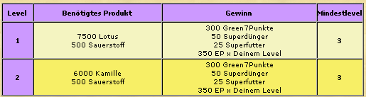 Für Teil 1 und 2 gab es je 500 Pkt. Im Teil 3 gibt es nochmals je 300 Pkt für Lotus, Kamille und den Sauerstoff. Wird die gemeinschaftsaufgabe geschafft nochmal 500 Pkt.