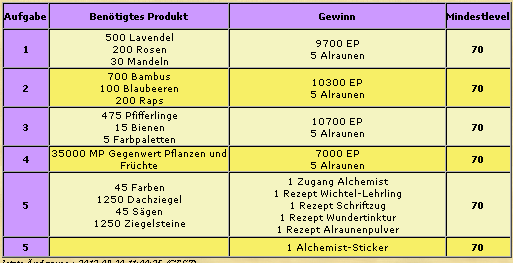 Leider ist der Alchemist nicht ausbalanciert und in der jetzigen Form ein fettes Minusgeschäft. Ein 1-Feld hätte es auch getan, die geschwindigkeitsvorteile von 4% sind nicht der Rede wert, zumal das Aufsplitten in verschiedenen Pflanzensorten das ganze unspielbar hinsichtlich Rentabilität, aktuellen Pflanzenbedarf und Planbarkeit ist. Sehr sehr schade bei dem interessanten Ansatz,offenbar braucht die Redaktion einen Praktikantenbaum für verspieltere Ideen.