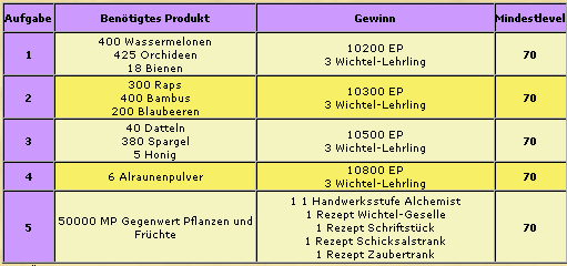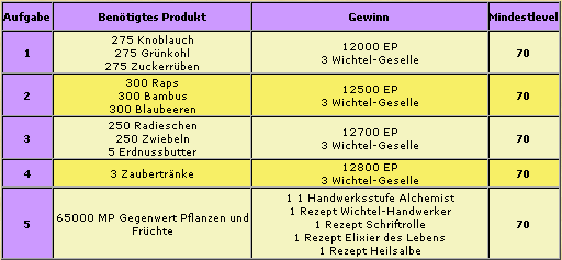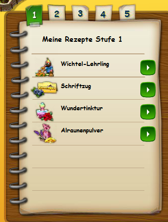 In jeder Stufe gibt es einen Wichtel und Zwischenprodukte, die Ihr brauen könnt. Jeder Wichtel und auch die Zwischenprodukte sind Halbfertigprodukte. Diese findet Ihr wie gewohnt auf Eurem Rezeptblock
