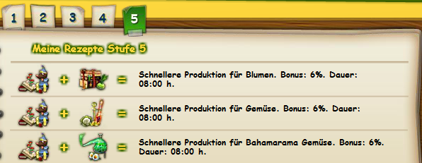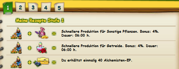 Dort habt Ihr dann die Möglichkeit den Wichtel in einen fertigen Wichtel-Bonus umzuwandeln. Je nachdem welches Zwischenprodukt Ihr mit dem Wichtel zusammenlegt, erhaltet Ihr einen besonderen Bonus, diesen könnt Ihr über den Button Rezeptübersicht erlesen: