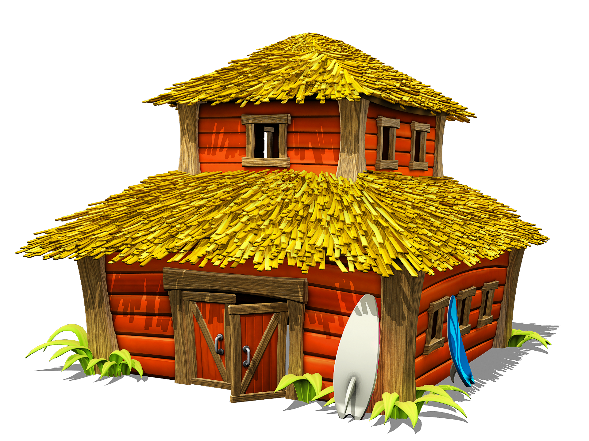 …und zum wohnen ne schnuckelige Strohhütte mit den Surfbrettern vor der Tür und dann nichts wie ab ins Meer zum surfen – ob da noch Zeit fürs farmen bleibt ?