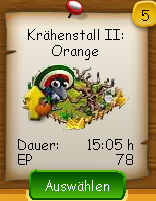 Aufmerksamen Spielern ist aufgefallen, daß der orangene Krähenstall seit kurzem statt bisher 06:48 Stunden 15:05 Stunden für die Produktion benötigt.
