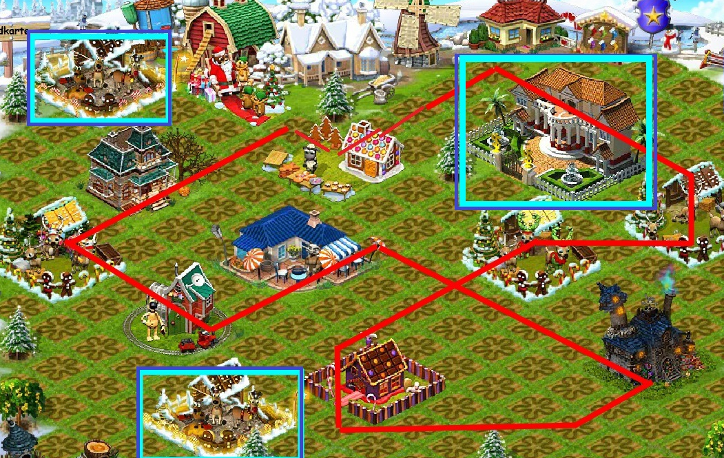 Ich weiß es war schon etwas gemein, dass die Kinder in der Villa nix bekommen haben und der Weihnachtsmann dahinter langgefahren ist…. aber von den 21 Teilnehmern haben es 9 richtig erkannt. Die Haustiere habe ich nicht berücksichtigt auch wenn einige die mit angegeben haben – mir kam es eher auf die Gebäude an. Problem war glaub ich auch der Schritt 2 x nach Westen, wenn man da eins runtergerutscht ist, dann hat man das Straßencafe oder die Geistervilla verpasst …