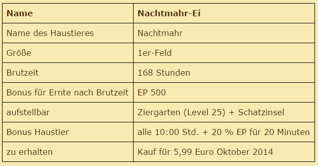Hinweis: Diesen Preis kann man sich auch holen, wenn man sich damals im Oktober 2014 dieses Haustier bereits für 5,99€ gekauft hatte. Somit kann jede Farm nun maximal zwei Nachtmahr-Haustiere besitzen!