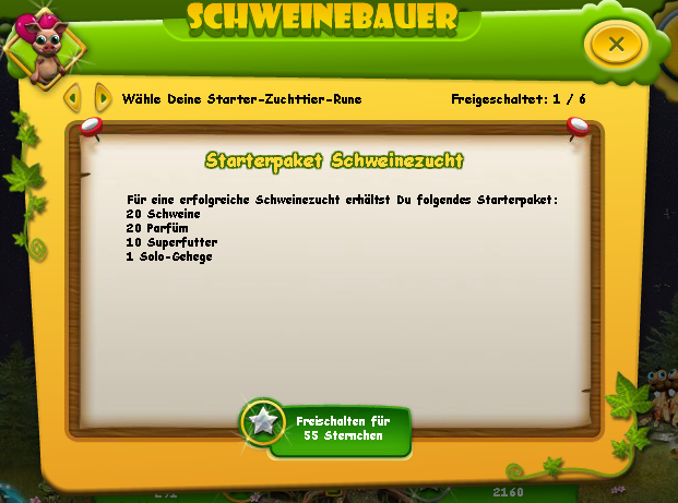 1 Sologehege,10 Superfutter, 20 Parfüm und 20 Fledis bzw. Schweine.