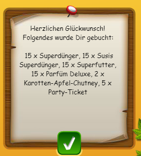 wer seine Farm über die Spieleseite RTL registriert hat kann wieder ein kleines Bonuspaket einlösen: