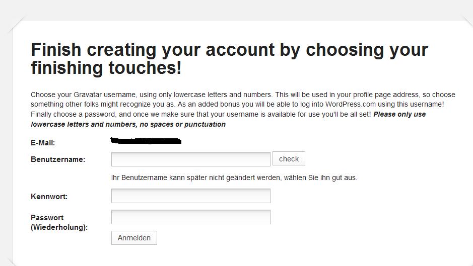 Nötig dafür ist nur eine gültige email Adresse und ein Benutzername.
