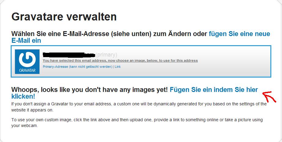 Um ein Bild hinzuzufügen, klickt Ihr auf den Link (roter Pfeil)
