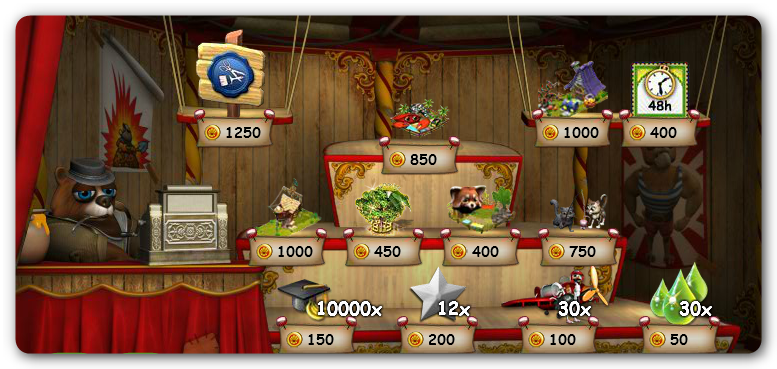 Der Handwerks-Bauplatz, das Hexen-Ei, das Piratenpapagei-Ei und das Krabbengehege können nur einmalig in Renzo`s Gewinn-Bude geholt werden. Diese Plätze werden nicht mehr aufgefüllt bei den nächsten Besuchen des Jahrmarkts.