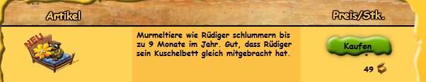 Besteht vielleicht die Möglichkeit, dass man das Murmeltier unter Geschenke mit einfügt, so daß man die Möglichkeit hat, es Freunden/Nachbarn für 49 TG zu schenken.