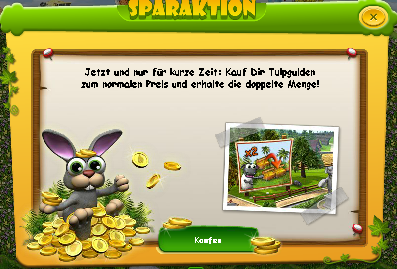 Auf geht es in die 2. Runde mit der Sparaktion! Der Werbebanner verspricht einem die doppelte Tulpgulden Menge: