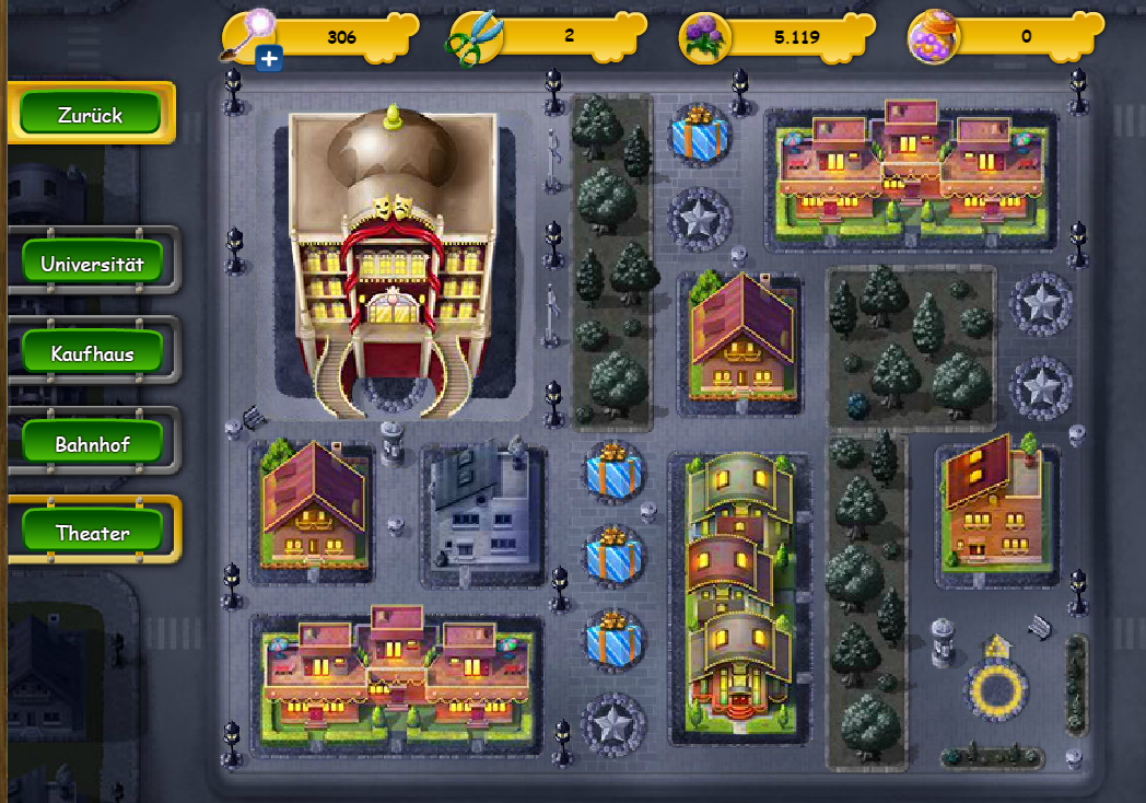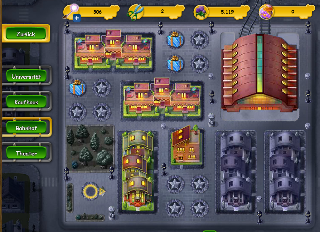 Wenn man das Theater vor dem Bahnhof macht, hat man dort Scheren übrig und kann diese beim Bahnhof mit verwenden. Ihr habt so auf jeden Fall immer die 3 Puschel, die euch das Hauptgebäude freischalten mit dem Upgrade für das Item.