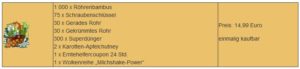 Ihr benötigt nach diesem Spielplan 11062 Pflanzen und 1066 Drop.