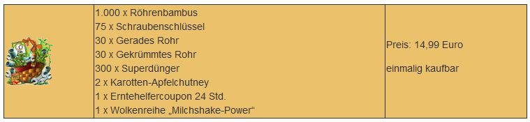 Es war heute kurz eine Info sichtbar, nachdem es eine Kauf-WL geben wird, die man am Freitag käuftlich erwerben kann – kostet 14,99 Euro. Sollte dies der Fall sein und ihr euch mit dem Gedanken tragen, diese zu erwerben, dann wäre auch sinnvoll morgen nur Drop zu generieren, da in dem WL-Kauf-Paket auch Pflanzen enthalten sind und ihr euch so den Superdünger sparen könntet. Aber die OA dazu wird denke ich erst morgen kommen, für einen kurzen Moment war sie sichtbar.