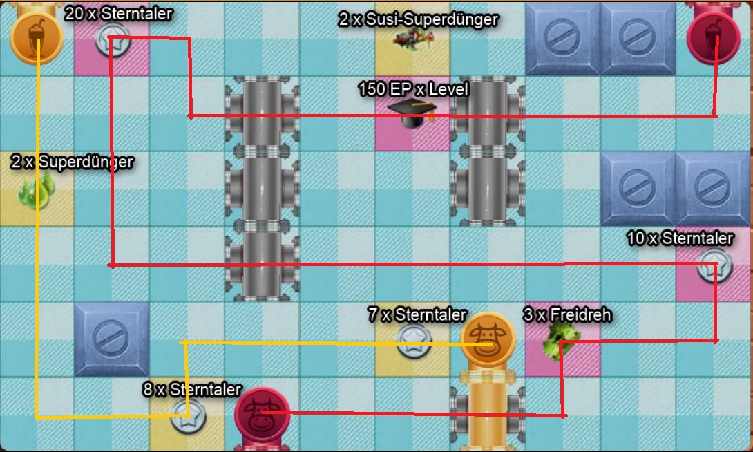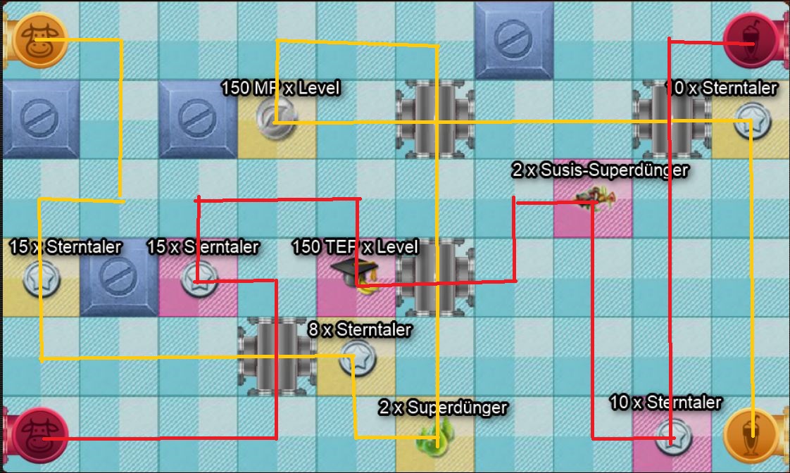 Bei Level 1 und 2 gibt es eine Superspar-Version, bei der ihr allerdings einige Sterntaler verschenken würdet, und von daher sind da vielleicht die paar Pflanzen mehr schon lohnenswert. Sicher kann man mit 2-3 Feldern mehr auch noch den einen oder anderen Gewinn mitnehmen (in Level 2 z.B. das Superfutter) aber die Entscheidung überlasse ich euch