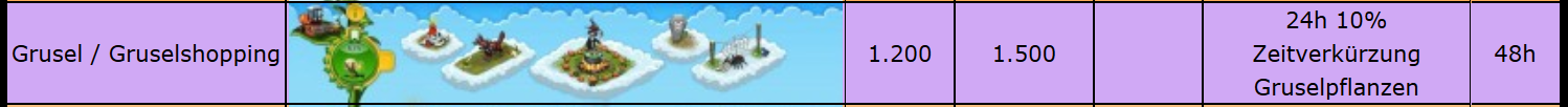 außerdem könnt ihr für Gruselpflanzen zur Zeitverkürzung den Gruselstrauß nutzen (20% schnellere Produktion bei Gruselpflanzen für 10 Stunden)