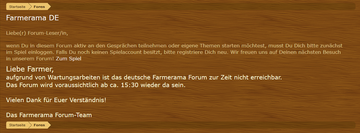 Auch im Forum von Farmerama DE gibt es Wartungsarbeiten.