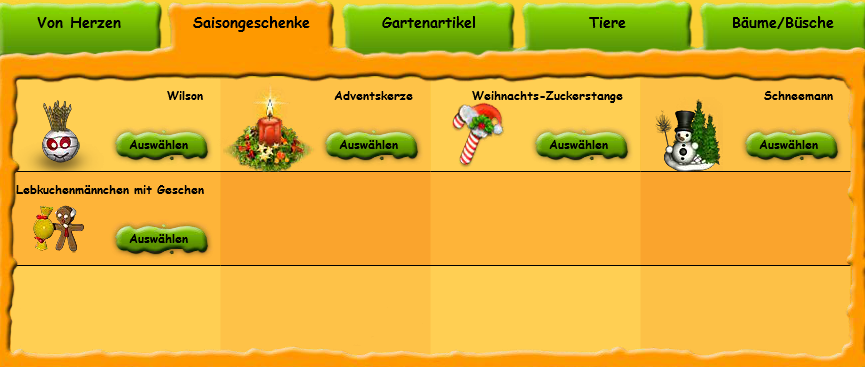 Update: Es gab einige Verwirrung wegen der Geschenke. Die „Adventskerze“ und „Weihnachts-Zuckerstange“ gab es auch im Vorjahr als Geschenk schon. Der Schneemann und das Lebkuchenmännchen mit Geschenken waren normale Items und sind jetzt auch als Geschenke versendbar.