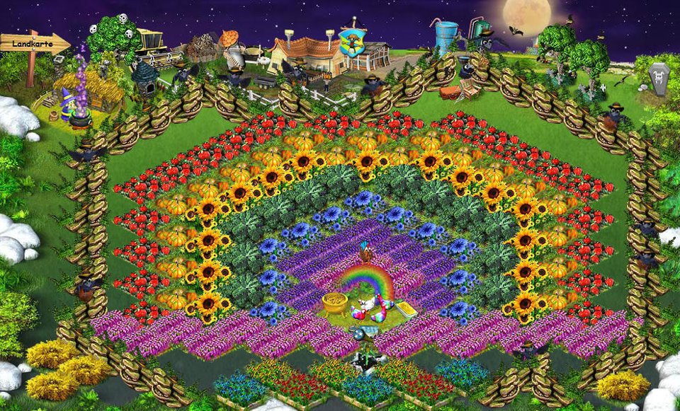 Mache einen farbenfrohen Screenshot von deiner Farm (es kann jede Anbaufläche genommen werden), poste ihn auf unserer Pinnwand und füge deine ID als Kommentar hinzu. Unsere Jury wird am Freitag Nachmittag 3 Gewinner küren. Als Preis winken ein Regenbogenbaum und 5 Regenbogenhühner.