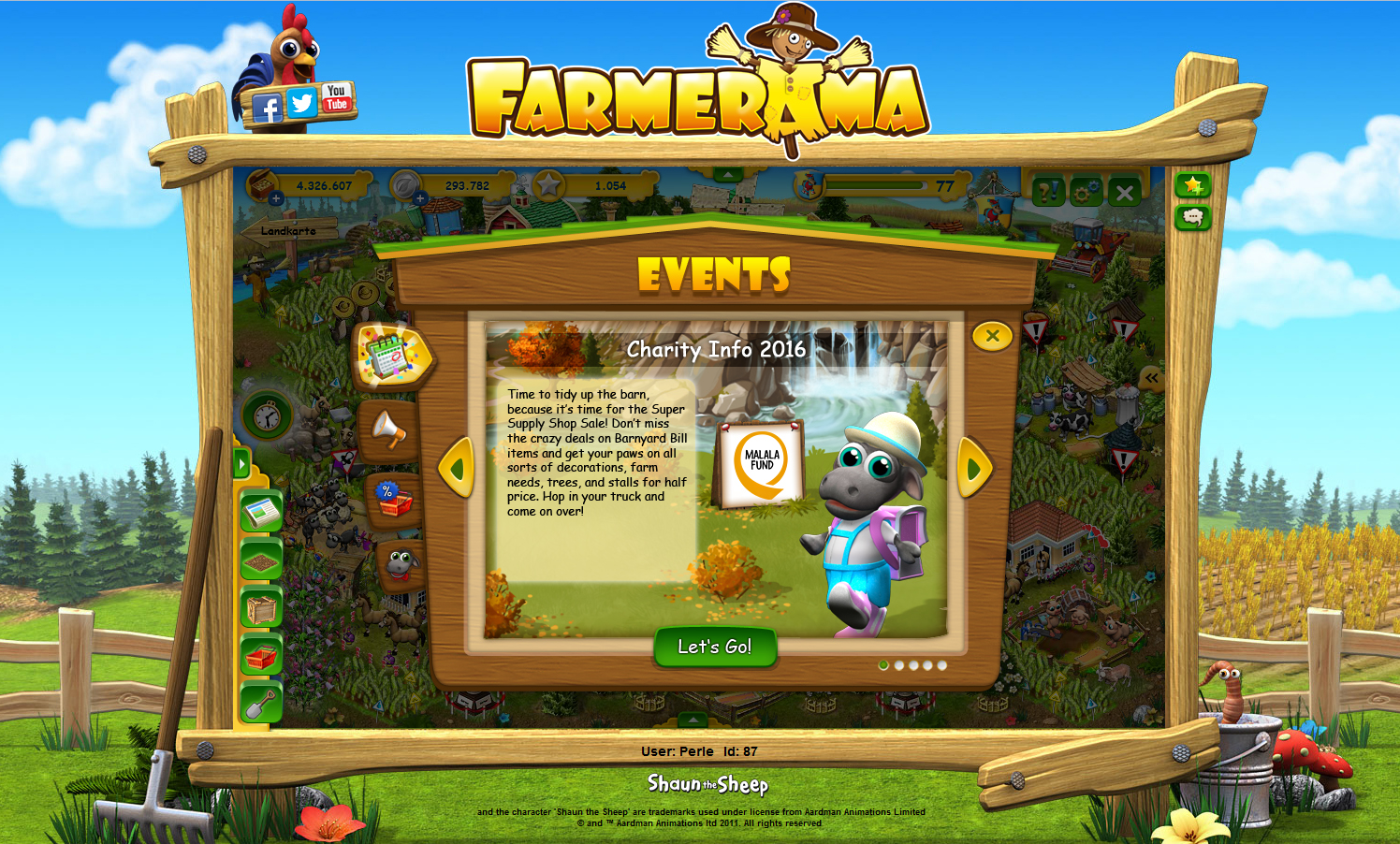 Der Kaufkorb in der Kollage beinhaltet unter anderem eine Wolkenlinie und die schönen Items, die wohl auf dieser Wolkenranke platziert werden können. Ich nehme an, dass es sich bei diesem Kaufkorb um eine spezielle Verkaufsaktion zugunsten des Malala Funds handelt. Meine Annahme gründet u.a. auf die Überschrift Charity Info 2016 des nachfolgenden Bildausschnittes. (Der weitere Textinhalt ist ganz offensichtlich nicht dem „Schulgarten“-Event zuzuordnen!)